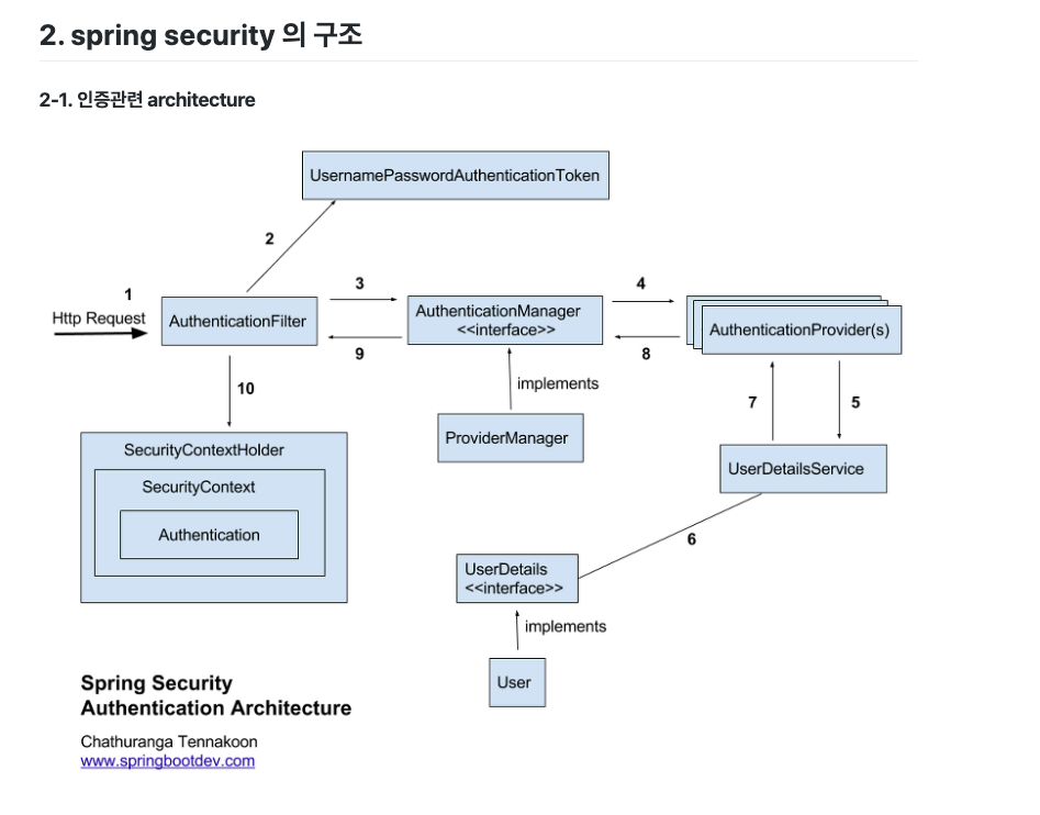 DaoAuthenticationProvider 로그인시 username과 password를 제출하면 UsernamePasswordAuthenticationFilter가 Authentication 타입의 UsernamePasswordAuthenticationToken을 만들어 AuthenticationManager에게 전달되고, DaoAuthenticationProvider에게 전달된다. DaoAuthenticationProvider는 token의 username을 이용해 UserDetailsService에게 Userdetails을 요청받고, PasswordEncoder를 통해 UserDetails의 password와 token의 password를 비교한다. 인증에 성공하면 UsernamePasswordA..